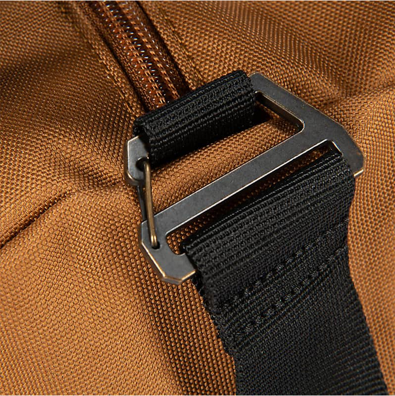 Haul tools to the job site or supplies to the campsite in this Carhartt duffel bag. Made of sturdy fabric with a water-repellent finish, it has a coated interior that wipes clean easily. Heavy-duty buckles and double-layer webbing on the carry handles make it extra durable.