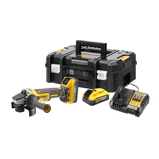 DeWALT 18v XR Brushless Angle Grinder 125mm in TSTAK Case - 2 x 5Ah Powerstack Batteries - DCG409H2T-GB