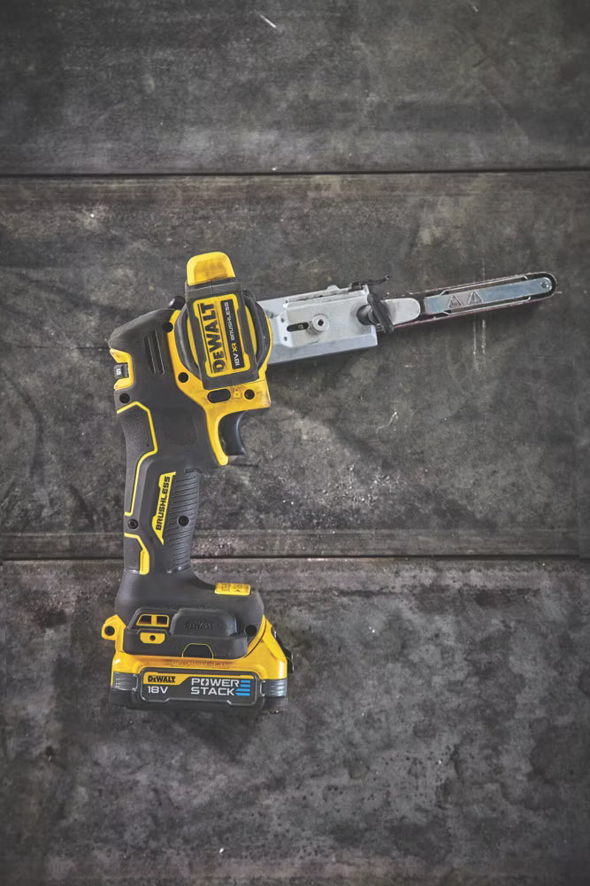 The DCM200 Bandfile is engineered for tough commercial applications rotating up to 1,700 m/min. This power is controlled with a variable speed trigger and speed setting dial. A 173° pivoting arm enables the user to take full advantage of the portability and versatility and to access hard to reach spaces. Coupled with a Rotating LED to help illuminate the workspace and tool-free belt change the DCM200 provides user convenience, mobility and versatility. It joins 250+ products in the 18V XR system.