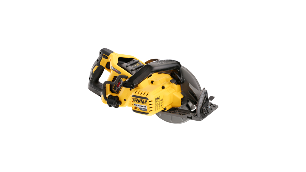 - Powered by a 54V XR FLEXVOLT battery, this cordless circular saw uses a 190mm diamond-shaped bore blade and delivers a no load speed of up to 5,800rpm and a 65mm depth of cut.