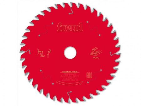 The Freud Wood Circular Saw Blade is used to cut wooden materials such as hardwood, softwood, timber or chipboard. It offers a long lifetime and high cutting performance. Combined with the correct circular saw, the blade would be used by all trade professionals and some home DIY users. The blade is made from a premium steel body and a special rolled-in tension ring. This ensures the highest stability, accuracy and blade flatness. The flatter the blade the less material is wasted. The blade has high-quality, precision-ground carbide teeth and a Teflon-coating ‘Perma-SHIELD protection’. The protection and carbide teeth reduce the friction and prevents long term corrosion. The laser-cut expansion slots across the blade are designed to lower vibration during use. This dampens noise and prevents the blade from warping. It is compatible with plunge and hand-held saws. Supplied as a single unit.