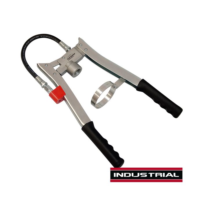 Perfect for use with screw type grease cartridges. Eradicates any problems with priming that may arise with standard grease guns. Suitable for Industrial environments.• Double lever grease gun, complete with 300mm flexible hose with 4 jaw coupler