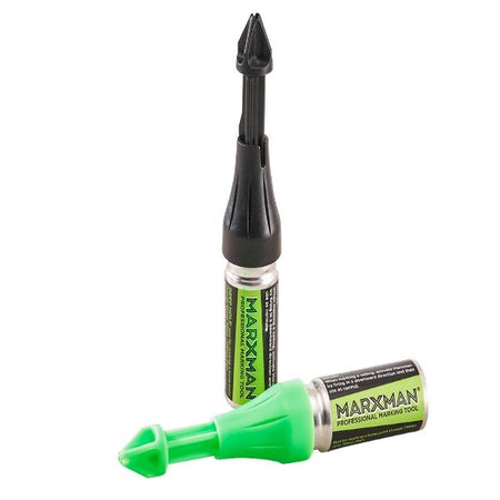 - Contains one green marker (marks up to 45mm depth) and one black marker (marks over 45mm) for use on all surfaces