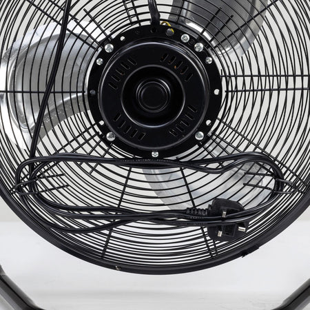 Mounted on a sturdy steel frame, the fan head can be tilted on its vertical axis to adjust the airflow and provide outstanding cooling and air circulation coverage.