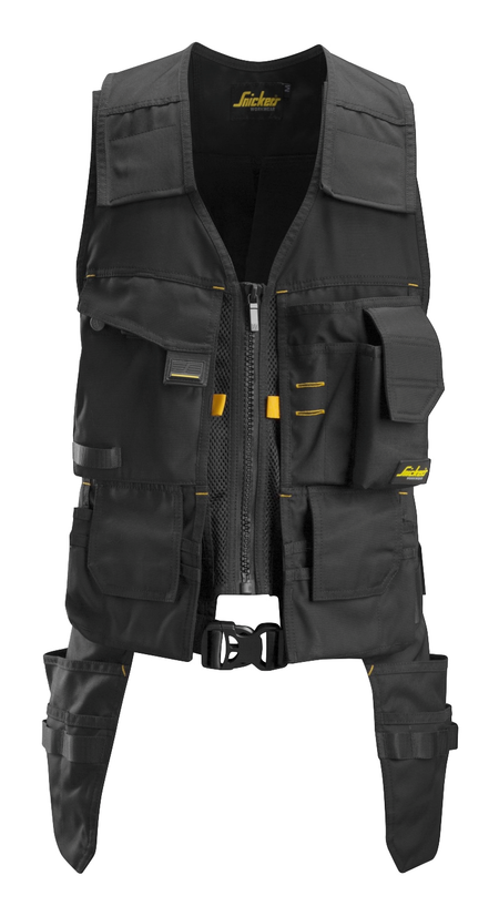 Everyday use tool vest that offers excellent tool carrying and plenty of options for practical storage. The vest features mesh ventilation at the front that ensures efficient breathability during intense work. Wide and adjustable shoulder straps and an elastic at the back provide smooth comfort while an integrated belt reduces pressure on shoulders. In addition, an integrated inside expander makes it possible to wear the vest with or without a jacket.