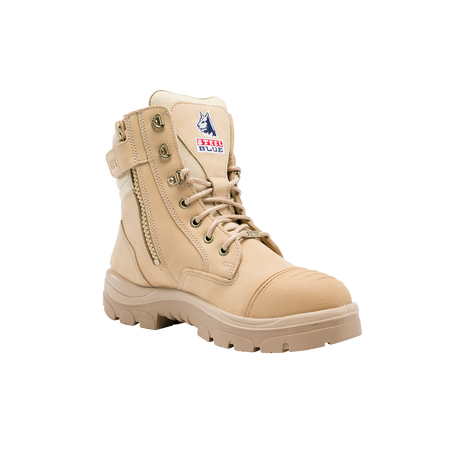 - Made from premium Water Resistant leather, this safety boot features a 200J Steel Toe Cap and industrial grade zipper so you can tie your laces for the perfect fit and use the zipper for easy for on and off.