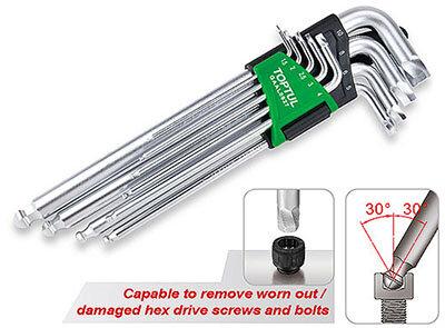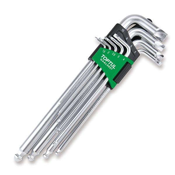 Toptul Extra Long Ball Hex Key Set with Extractor - 9pc - QGAAL0927