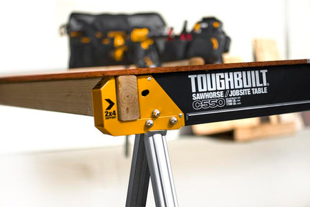 The ToughBuilt® C550 Sawhorse and Jobsite Table is durable, rugged and offers unparalleled value. Constructed of 100% high-grade steel, this sawhorse has a remarkable 1100 lb. capacity alone, and 2200 lb. per pair.