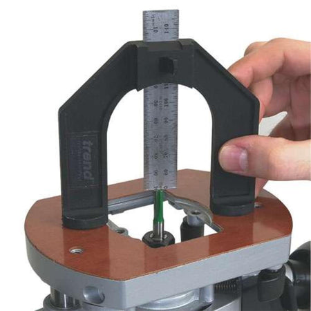 A metal rule depth gauge to set height of router cutters and saw blades accurately.