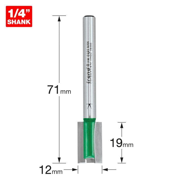 Trend Two Flute Router Cutter (Hinge Jig Bit) - 12mm Diameter 1/4" Shank - C019AX1/4TC