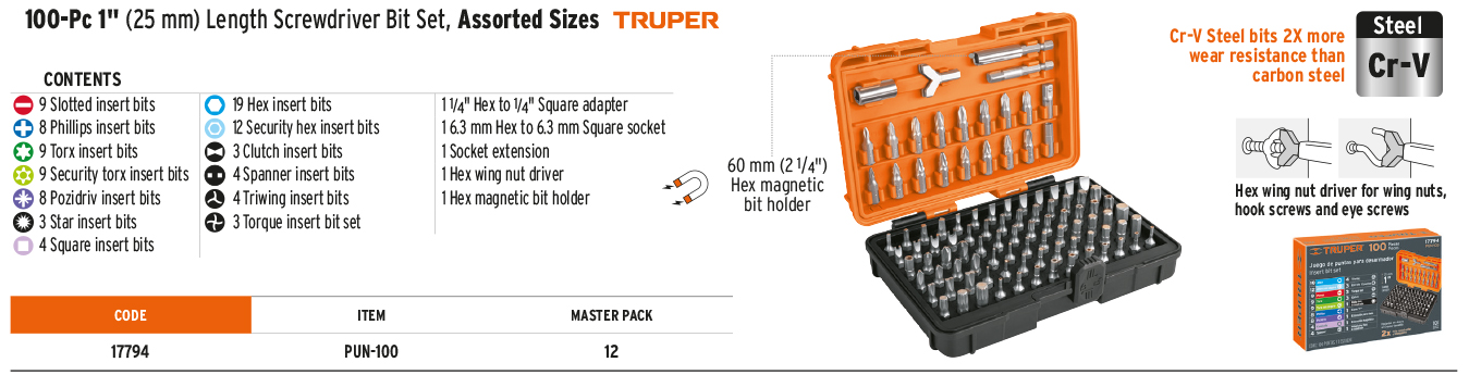 TRUPER 25mm Insert Bit Set - 100 Piece - TP17794